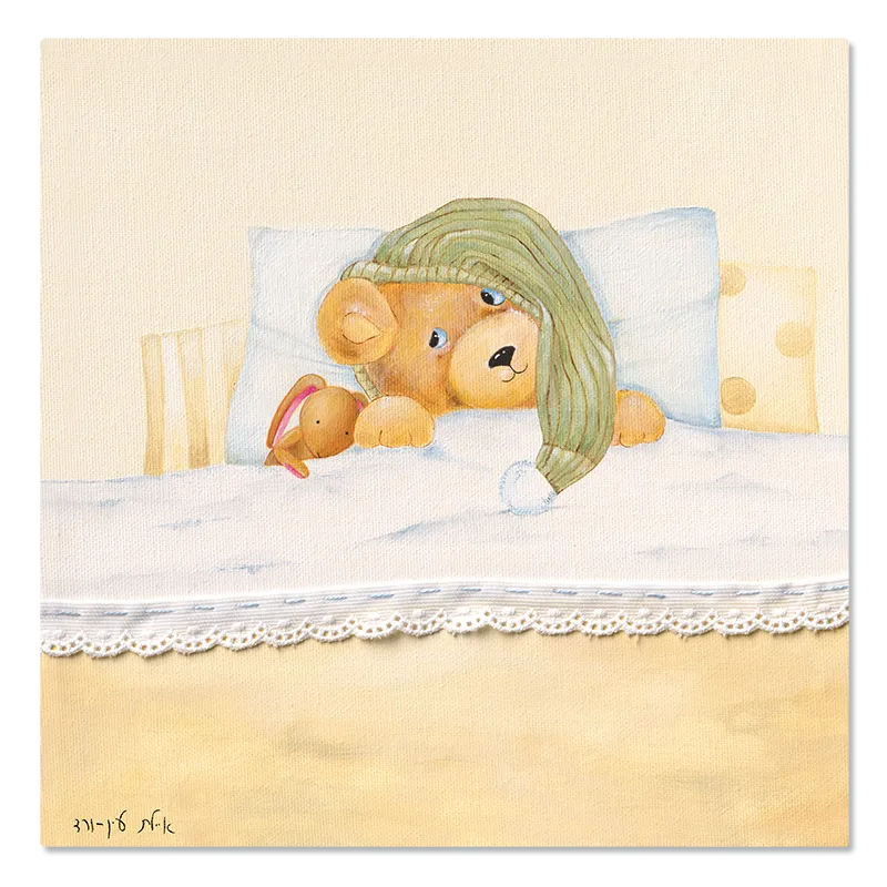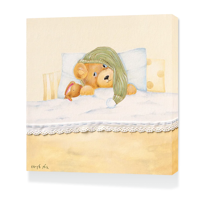 תמונת הקנבס דובי במיטה היא חלק משלישיית תמונות מקסימה של חיות. דובי, שפן וכבשה לפני השינה. כל חיה מביאה איתה סיפור משלה ויחד הן יוצרות חבורה הרמונית ומרגיעה לחדר.