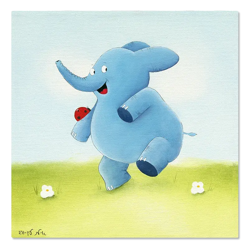 מנורת לילה לילדים צ'רלי הפיל רוקד עם חיפושית על דשא ברקע שמיים כחולים, דלוקה